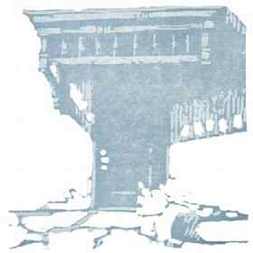 THE FIRST COLOR RUN (fig 1-1, above). The image was broken down to its core abstraction, transferred onto the Key Block and then carved. The Key Block was used to align or register the subsequent color blocks. Once proofed, this first cut was printed over all the paper set aside for the edition, creating the First Color Run. The prints were allowed to dry for twenty four hours before printing the second run.