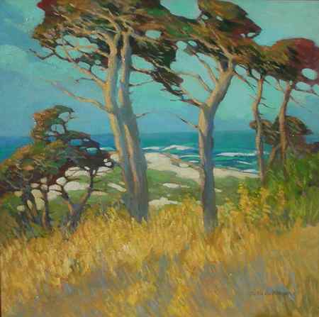 Mary DeNeale Morgan (1886 - 1948), Near Point Pinos, oil on masonite, 30 x 30 inches, 1920. Courtesy of Terry and Paula Trotter, Trotter Galleries, Carmel and Pacific Grove)