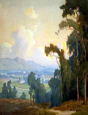 Marion Kavanaugh Wachtel (1870 - 1954), Untitled (Eucalyptus Trees, watercolor, 12 x 9 inches, n.d. Courtesy of The Irvine Museum)
