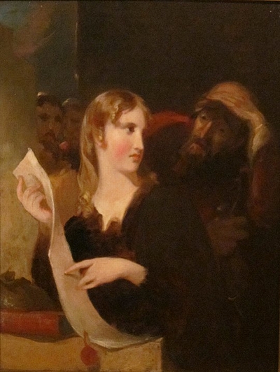 (above: Thomas Sully, Portia and the Merchant of Venice, 1836, oil on wood panel (recto and verso), 22.37 x 17.93 inches, Cincinnati Art Museum. Public domain, via Wikimedia Commons*)