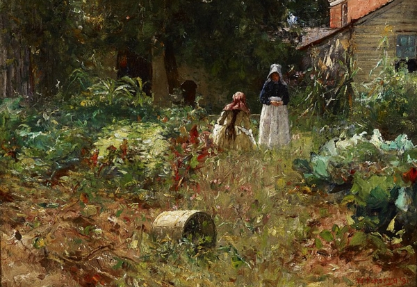 (above: William J. Forsyth, In the Garden, c. 1891, oil on canvas, 26 3/4 x 20 3/4 inches, Indianapolis Museum of Art, Gift from the Estate of Charlotte Hofmann Bose, 2014.7. Public domain, via Wikimedia Commons*)