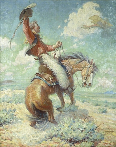 (above: Clyde Forsythe, Flying High, 1920, oil on canvas, Denver Art Museum, William Sr. and Dorothy Harmsen Collection. 2001.1257)
