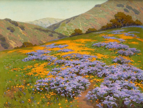 (above: John Marshall Gamble, Wild Heliotrope and Poppies, San Francisco, c. 1893 -1906, oil on canvas, 20 ? 24 inches, Birmingham Museum of Art, given by Lucile Peters Graham in memory of Dr. and Mrs. U. J. W. Peters. Public domain, via Wikimedia Commons*)