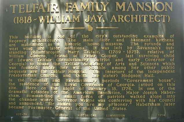 (above: Photo of detail of commemorative plaque titled "Telfair Family Mansion" near front entry of Telfair Museum of Art., May, 2011. Photo © John Hazeltine)