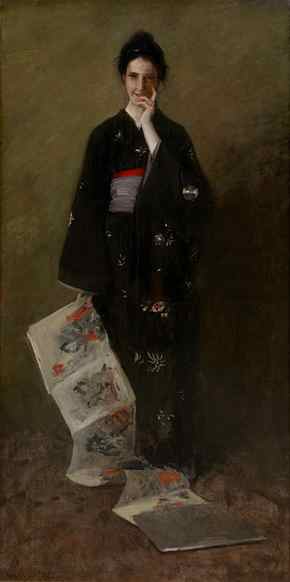 (above: William Merritt Chase, The Open Japanese Book, ca. 1900, Oil on canvas, 72 x 37 inches. The Hevrdejs Collection)
