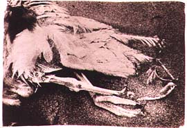 The success of my work, as represented by the slides submitted with this application, is in its ability to challenge viewers to contemplate their relationship to other forms of life--to jar their complacency with juxtapositions of life and death. On a primal level, many people find themselves thinking about the mass extinction of species (currently estimated at 15,000 to 30,000 annually) when they see these photos of bones or the dead gull on the sand. At the same time another message is being delivered: beauty can be found in something that a moment ago they would have thought impossible. I hope to find ways of presenting living forms in an equally challenging and beautiful way.