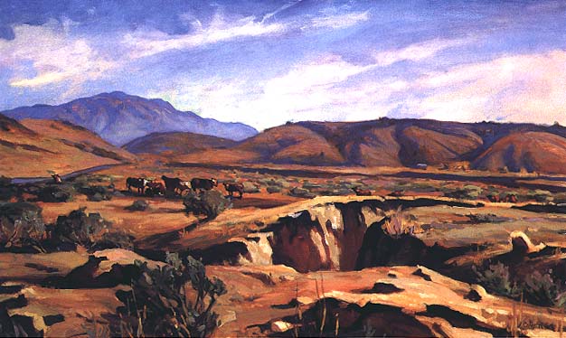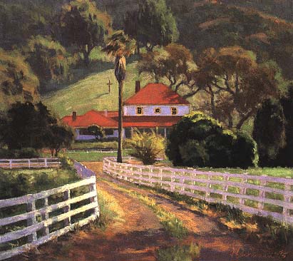 We were talking about the history of Arroyo Hondo and the other Mexican land grant ranches of Santa Barbara County - what a wonderful and mostly unknown resource they were - when it suddenly occurred to me, why not paint them all? I had recently opened an art gallery which featured landscape painters, and had come to know a wide circle of artists. Not being an artist myself, this was an ideal setup--I enjoyed organizing shows and projects and going out on location with the artists when they painted.