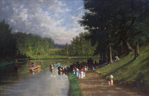 (above: Frederick Stone Batcheller, Summer Afternoon along the River, Rhode Island, 1889, oil on canvas, 36.25 x 54.25 inches, Vose Galleries, Boston, Massachusetts. Public domain, via Wikimedia Commons*)