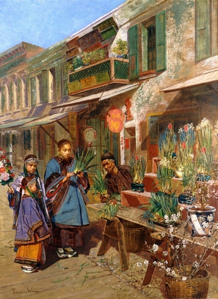 (above: Theodore Wores, New Year's Day in San Francisco's Chinatown, Unknown source. Public domain, via Wikimedia Commons*)