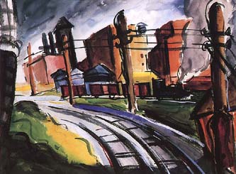 Above RIght: Untitled (Railroad), 1938, watercolor, 22 1/2 x 31 inches