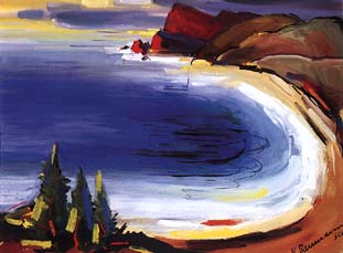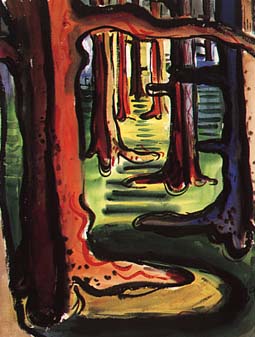 From 1938 to 1941, Baumann painted almost exclusively in watercolor. His subjects included landscapes, cityscapes, seascapes, war themes, and still lifes, all varying in degrees of abstraction. Three themes formed the basis for all of his art: nature, man's deviation from nature, and the catastrophic condition that results. Baumann was interested in expanding one's mind beyond the scope of that which we experience on earth into the realms of the universe. He wished to open man's eyes to see beyond what is visually obvious. He had an unquenchable desire to explore the essence of nature and was intrigued by the mysteries of the universe. He believed that peace existed so long as man lived in harmony with nature and that ill fortune occurred when he lost respect.