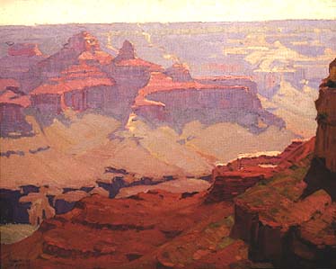 The earthy colors of browns and reds vary gradually into the misty distance.