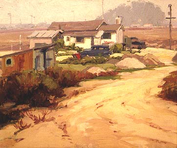 In keeping with Harris' interest in atmosphere, many of his early paintings reveal a great affection for fog effects. He seems, at times, to relish getting up early in the morning to catch the delicate California fog, faithfully recording its ethereal masking of color and form.