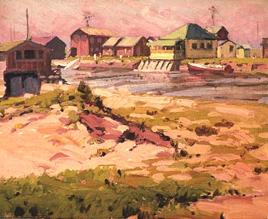 The early works are characterized by a strong preoccupation with light and atmospheric effects as subject matter. Harris' interest in this genre can be traced to his early and intense admiration of the works of John Constable (1776-1837) and Joseph Turner (1775-1851), the two giants of English landscape painting who are noted for their bold and advanced treatment of light and atmosphere. Harris visited England in 1913 and was completely overtaken by the paintings of these two artists.