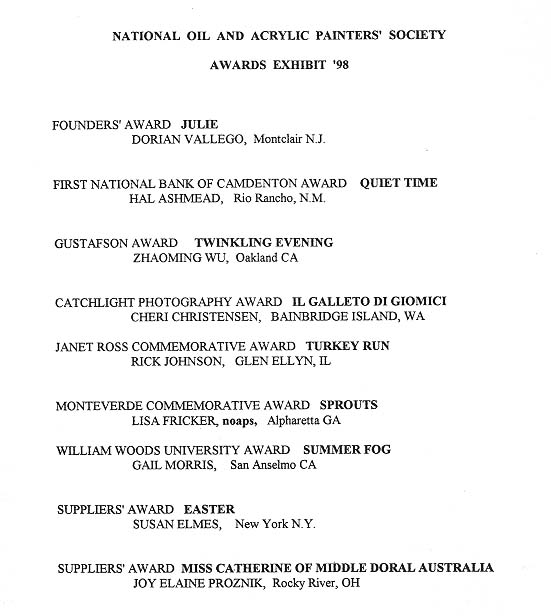 The National Oil and Acrylic Painters' Society (NOAPS) EXHIBIT '98