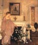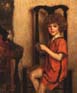 From top to bottom: Nancy and the Map of Europe, 1919, oil on canvas, private collection; On Christmas Day in the Morning, 1924, charcoal and colored pencil on paper, collection of Richard York Gallery; Ziffy in Bed , 1906, oil on canvas, Nebraska Art Association, Beatrice D. Rohman Fund; Lavender and Old Ivory , 1914, oil on canvas, private collection; Child with Yarn (Johnny Blake), 1923, oil on canvas, Adelson Galleries, Inc.; The Sailor Boy (William Wertenbaker), 1943, oil on canvas, private collection