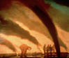 paintings depicting the oil fires of Kuwait in the Gulf War, dramatize the