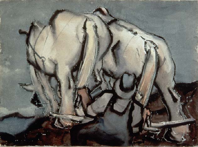 realm of the personal or spiritual, rather than the commercial. (left: Plowing with Horses, n.d.,watercolor, 21 x 26 inches,