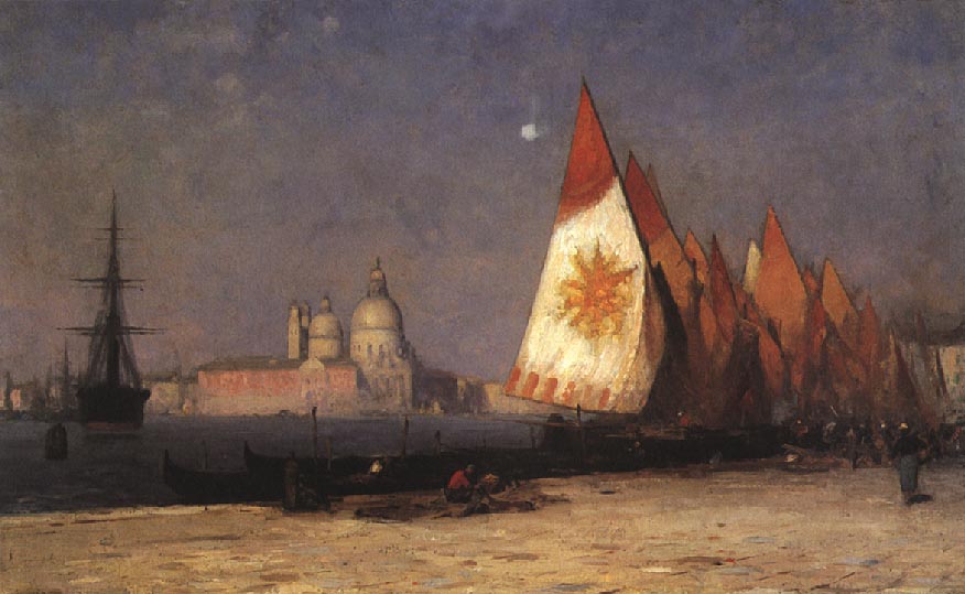 Images from top to bottom: Venice, 1879, oil on linen mounted on panel, 17 1/8 x 28 inches, bequest of Dwight William Tryon, 1930:3-121, photo: Stephen Petegorsky; Fishing, c. 1880, (verso of Self Portrait, 1891), oil on canvas, 22 x 17 1/4 inches, 1891:3-1, photo: David Stansbury; Springtime, 1895, oil on panel, 16 x 24 1/8 inches, bequest of Dwight William Tryon, 1930:1-104, photo: Stephen Petegorsky; November Evening, 1924, oil on panel, 20 x 30 inches, bequest of Dwight William Tryon, 1926:12-1photo: David Stansbury
