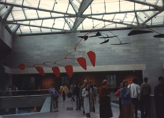Interior of East Building atrium of National Gallery of Art, featuring Alexander Calder mobile; photo: John Hazeltine, ©1987