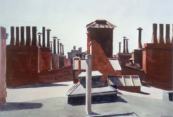 watercolors, composed only by Hopper's choice of vantage point, capture