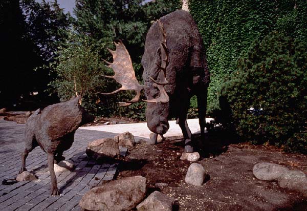 garden's centerpieces consist of a life-size bronze sculpture of a moose