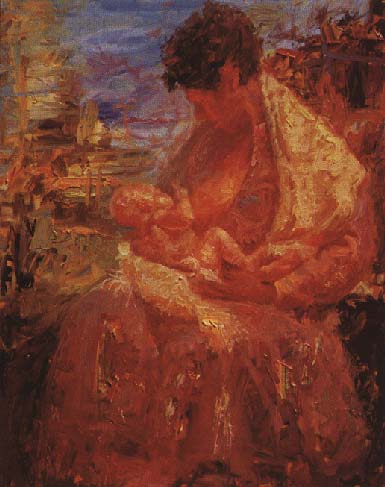 Images from left to right (click on images to enlarge them): Spreading Light and Truth, 30 x 40 inches; Utah Statehood Reenactment, 30 x 40 inches; French Waiter, 14 x 18 inches; Motherhood, 30 x 24 inches.
