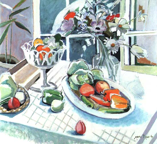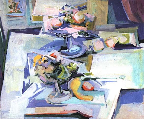 Images from top to bottom: Still Life with Two Compotes, 1968, oil on canvas, 30 x 36 inches, Still Life Composition, c. 1943, oil on canvas, 28 x 36 inches; Still Life with a Platter of Vegetables, 1991, oil on canvas, 40 x 44 inches. Photographs courtesy of Joseph Painter