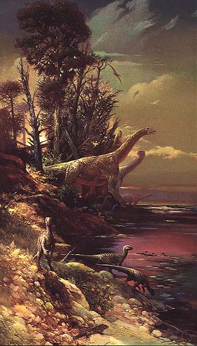 land birds, fifty foot sea reptiles, crocodilian land predators, and dinosaurs