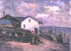 Woodbury had always loved the sea, and was exhilarated by the dramatic rocky coast of Ogunquit. In 1898, he built a summer house and studio on the rocks overlooking Perkins Cove; and one year later, he moved into a larger, more comfortable family home nearby. The area around Lynn had also provided Woodbury with the beach and ocean views, and the same scenes of fishermen and fishing shacks he found in Ogunquit. Even by the early 1800s a group of Lynn artists painted local coastal scenes.