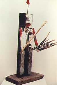 - (Above, He Shoulders the Load, 1996, mixed media, 36 x 48 x