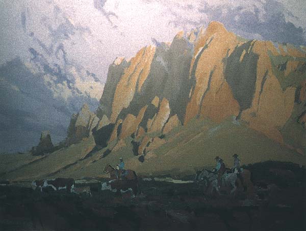 The staff at Phippen Museum continues to outdo itself. In pulling together this presentation of the works of artists who have devoted their talents to depicting the many faces of the Southwest deserts, Sue Willoughby, Kerri Vaughn, Bob Hallenbeck, and their dedicated crew of volunteers have once again done the near impossible. An exhibit of this magnitude doesn't just happen. Much studying and research is done. What artists excelled in painting the desert? What collectors, galleries, and museums have work by them and will be beneficent enough to loan it for exhibit? It took some delving, some imploring to locate and acquire the magnificent paintings brought together for this show. Artists represented are mentioned elsewhere in the catalogue, all noteworthy. Special among them as painters of the desert are Maynard Dixon, John Hilton, Ross Stefan, Carl Eytel, and Jimmy Swinnerton of "Canyon Kiddies" fame.