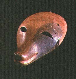 Abobe Right: Winking Mask, Inuit, late 19th century. Wood and paint. Collection of the Peabody Essex Museum. Gift of Ellen A. Stone, 1908. Photograph by Mark Sexton. The wearer of this mask may have assumed the role of the fox in a pantomime of the hunt. Its half-closed eye gives the fox a sly look and adds a spark of humor to the serious subject matter.