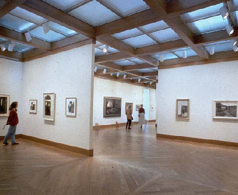 Three galleries in the old mill building boast original structural beams, white plaster walls, and pine floors. The fourth, the Andrew Wyeth gallery, features flexible wall partitions and a unique skylight system. All galleries open from a circular, brick-floored core - a symbolic silo for the old mill - with dramatic walls of glass, providing spectacular views of the Brandywine River and the rural landscape that inspired many of the artists represented in the museum's carefully focused collections.
